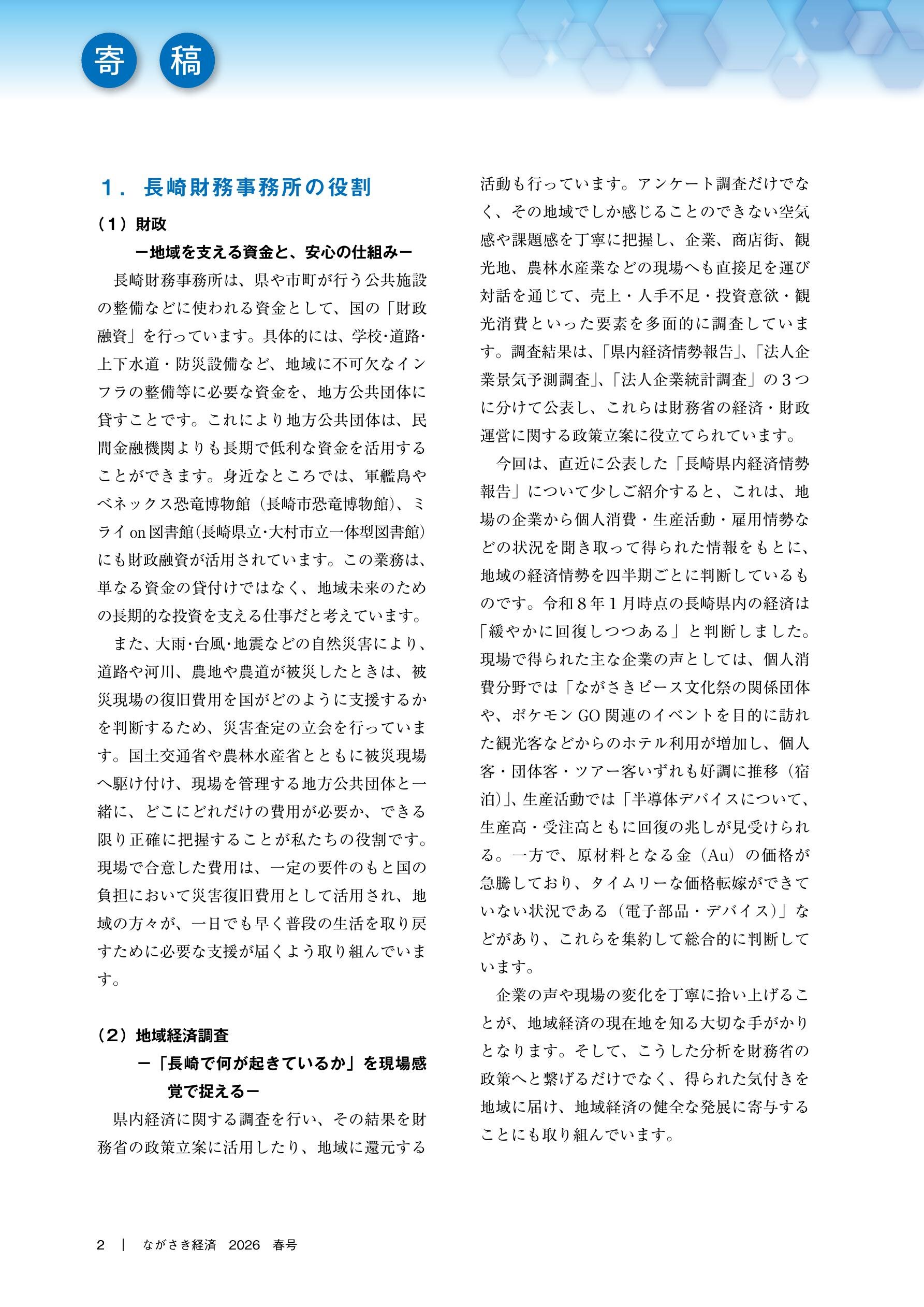 - 2026.03.31 トピックス 「ながさき経済 2026年春号」を発刊しました! New!