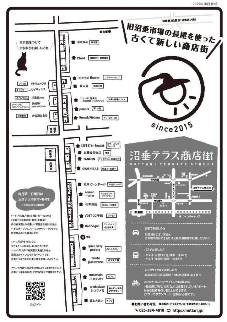 沼垂テラス商店街では、2012年から年1回開催していた青空市場を継ぐイベントとして、朝市(4~11月)と冬市(12~3月)を月1回、年に数回の夜市を始めた。これらのイベントは、コロナ禍における休止を経て、定例イベントとして現在も続いている。