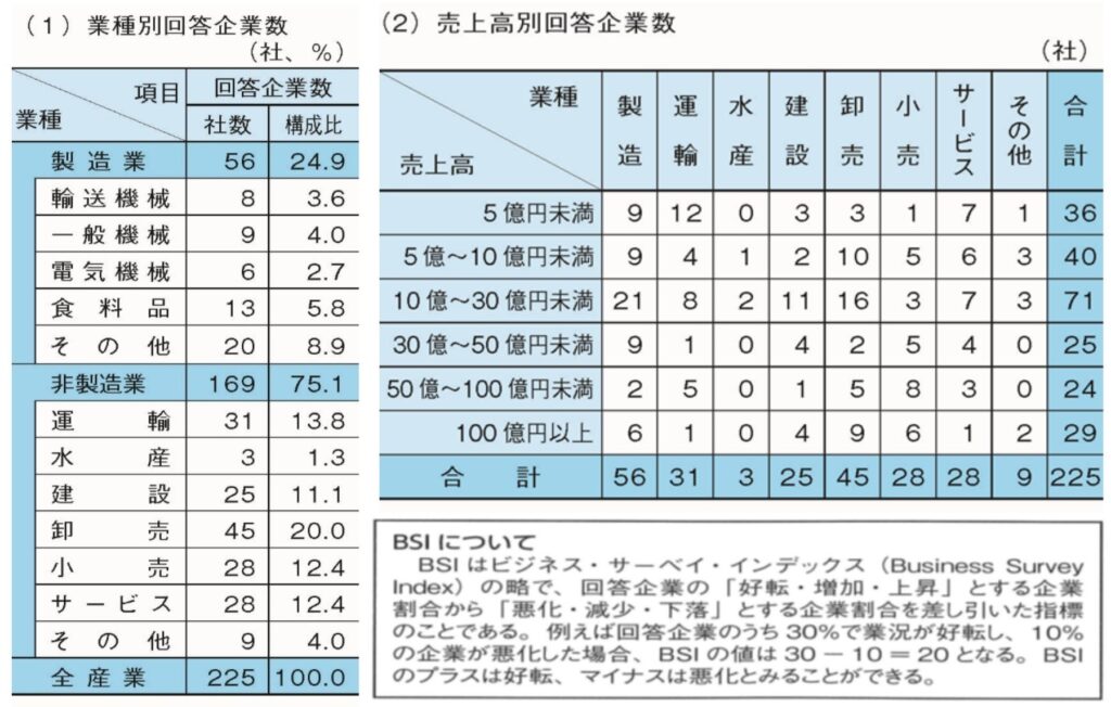 2.調査対象:県内主要企業368社(回答企業数225社、回答率61.1%)
